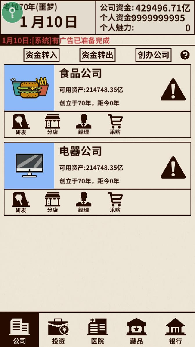 2.玩家需要合理分配资金,用自己的经营思路发展自己的公司。