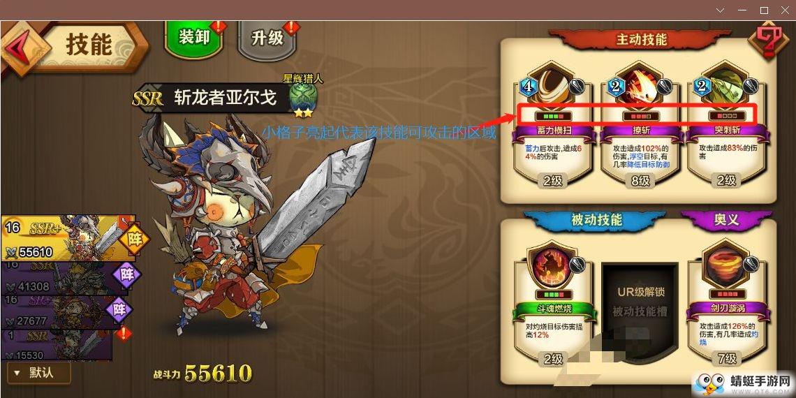 主动技能的功能非常多样,击晕,燃烧,冰冻,中毒,睡眠……一般附带额外效果的技能伤害会比纯技能伤害要低,尤其是击晕,是伤害值最低的技能。技能卡牌下方的原点代表技能的攻击范围,有的技能可以攻击到后排怪物,有的技能能攻击所有怪物,在技能搭配时需要注意一下噢。