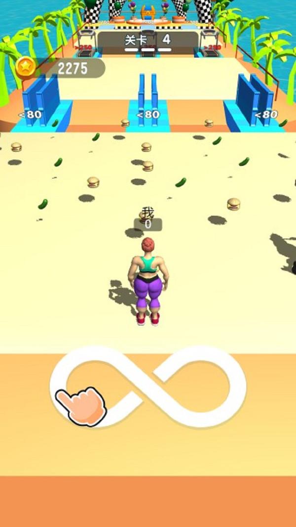 胖姐争霸赛手游是一款休闲的卡通风格的跑酷类游戏。注意控制好自己的身材,也就是体重,过于轻了那是病态的,但是过于重了就会显得臃肿,也是不好的。道路上会有很多的吃的,不吃的话就会消耗能量,吃的就是增加体重。注意一切的事物都是要适量的!