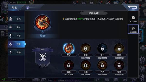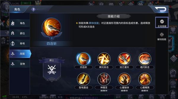 技能分为两部分,分别由主动技能与被动技能组成