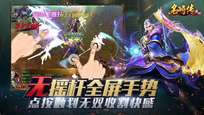 2、游戏采用了无摇杆全屏手势的操作模式,实现点按和触划操作与武将之间的交互,操作更轻松,并可以轻松实现各种连招技巧;