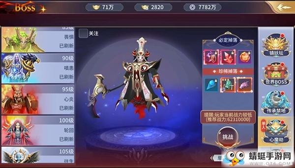 目前世界BOSS玩法分为镇妖坛、世界BOSS、传承禁地、心魔劫、妖灵坛、荒芜魔境六大玩法,每一个玩法都可以挑战各大实力强劲的BOSS,当然BOSS掉落也是非常丰厚,下面跟随小编的脚步来详细了解怎样玩转BOSS系统,早日打造一身神装!