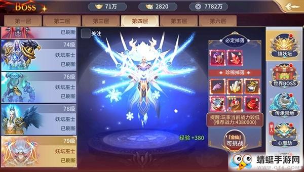 需要注意的是从第3层开始,要挑战BOSS需要玩家的仙职达到指定职位才可进入,第3层需要【地仙】、第4层需要【金仙】、第5层需要【仙王】、第6层需要【圣皇】。仙职需要玩家完成各种任务来提升。