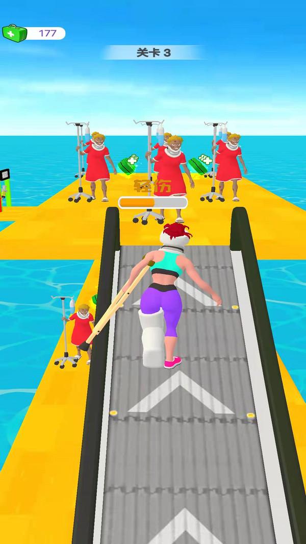 伤员跑酷,这款游戏告诉我们时时刻刻都要坚强面对,在这种关键时刻更为重要的是我们自身的坚持不懈才能成功地造就奇迹,摆脱伤病恢复我们的健康体质。