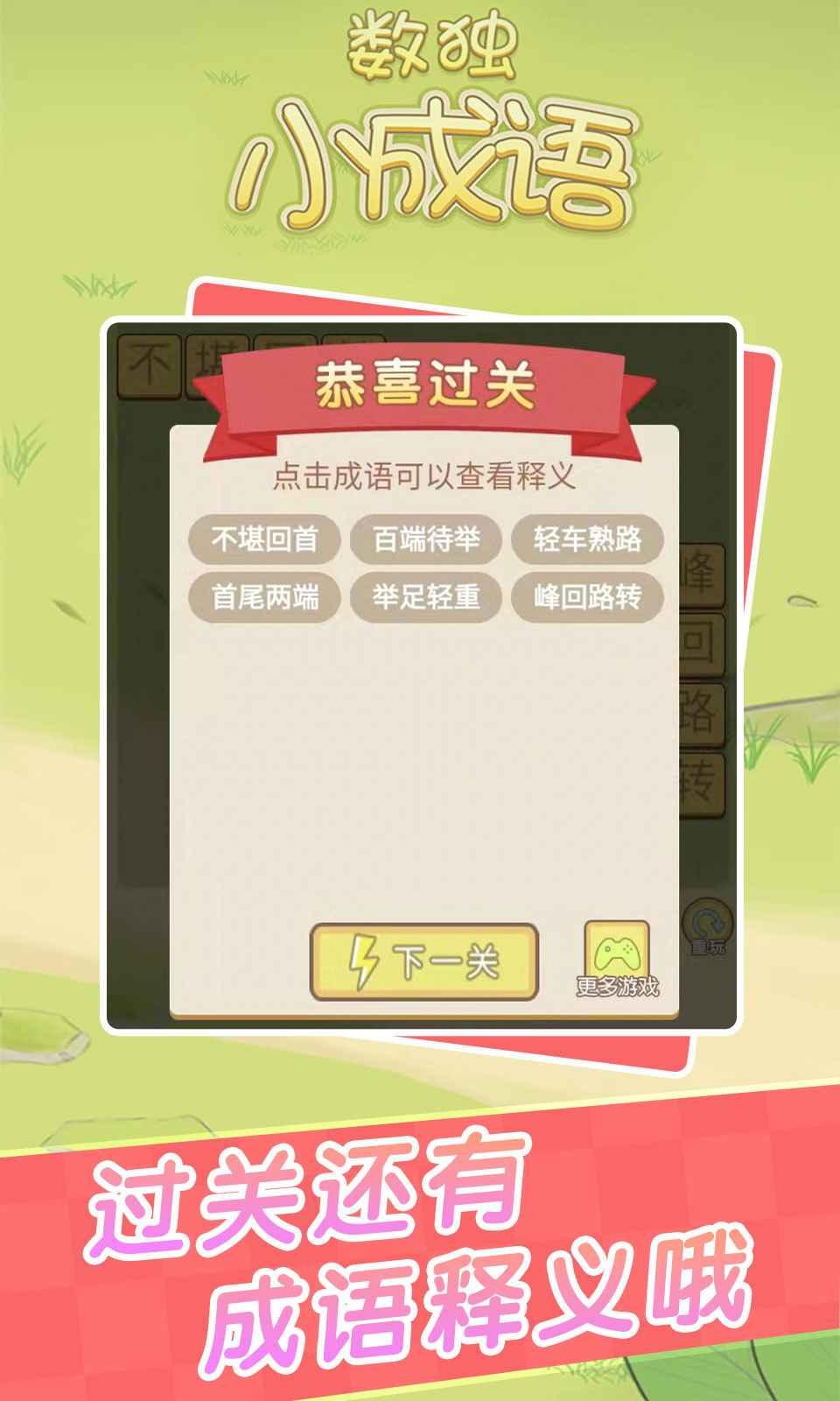 考量玩家成语常识储备的游戏,想要快速通关,就要了解更多的成语。