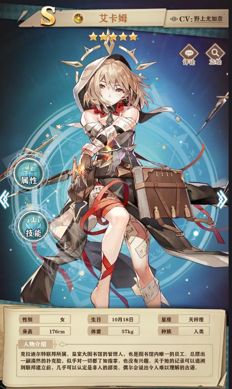 克拉迪尔特联邦所属,皇室大图书馆的管理人,也是图书馆内唯一的员工。总摆出一副漠然的扑克脸,似乎对一切都了如指掌,也没有兴趣。关于她的记录可以追溯到联邦建立前,几乎可以认定是非人的部类。偶尔会说出令人难以理解的古语。