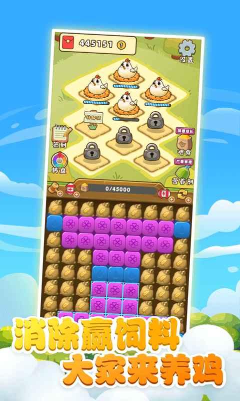 既能体验一步步建立属于自己养鸡场的奋斗过程,又能体验消除游戏的益智挑战!!