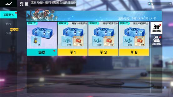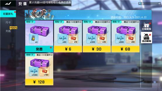 ●充值新增“初夏新礼”,时间:2021.4.30-2021.5.13。礼包内容如下:
