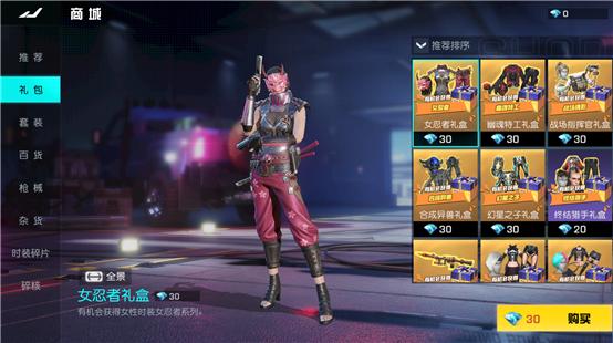 橙色时装礼包-女忍者礼盒。消耗钻石购买,概率获得女性人物时装女忍者系列。