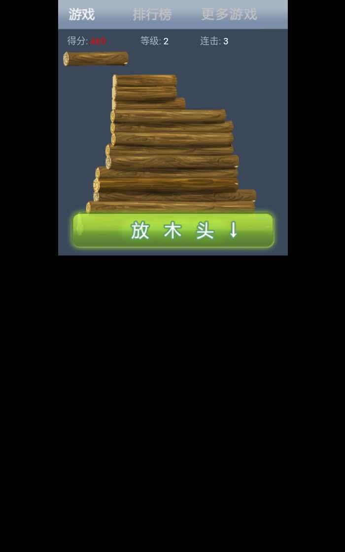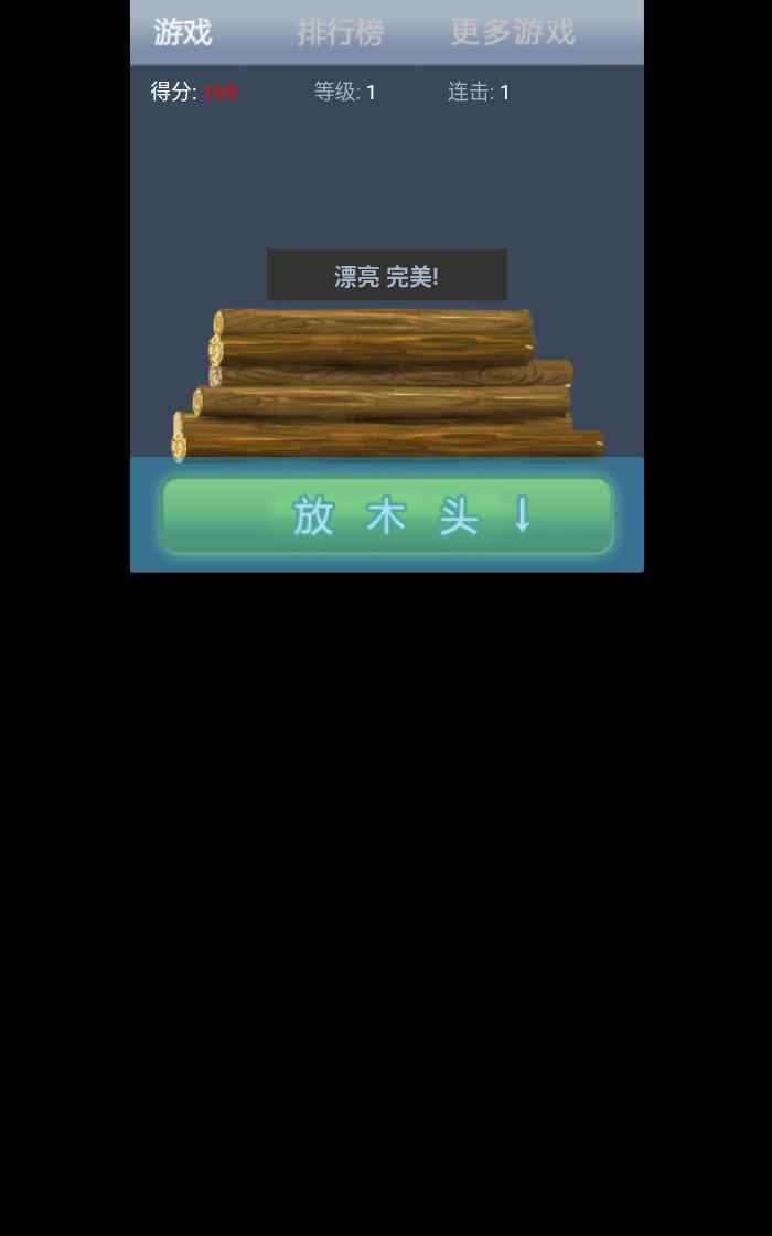 在游戏中玩家需要尽可能精准的将上下两根木头对准放到起;