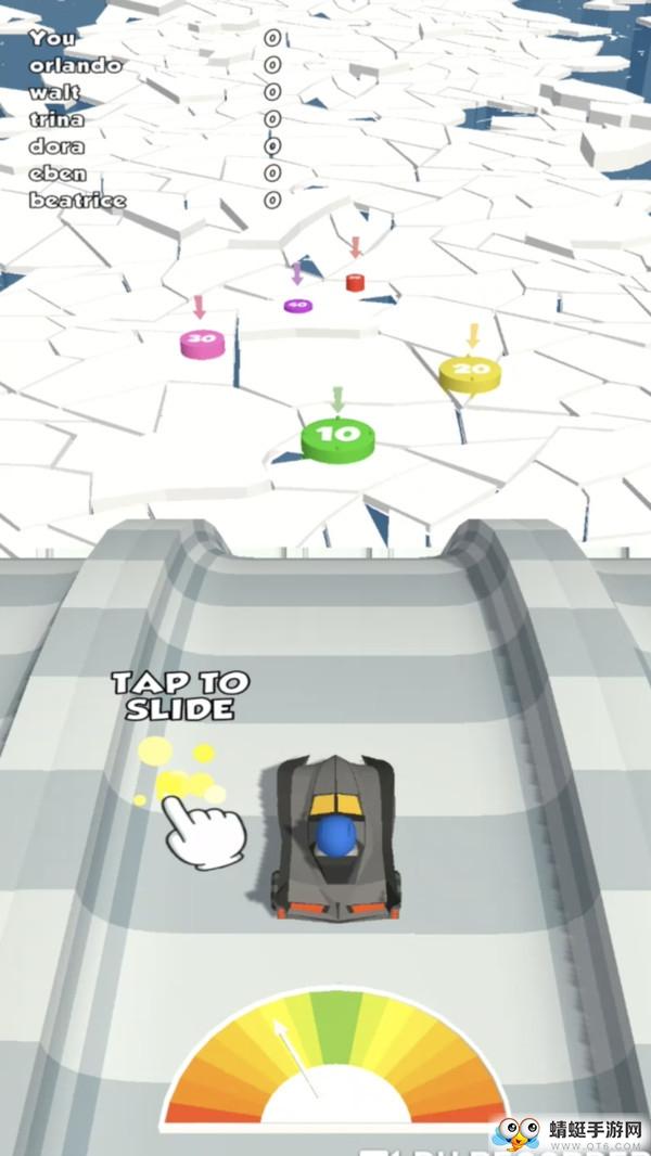 1、手指点击就能让小车出发啦,会经过裂缝的冰川还有很严峻崎岖的特殊地形;