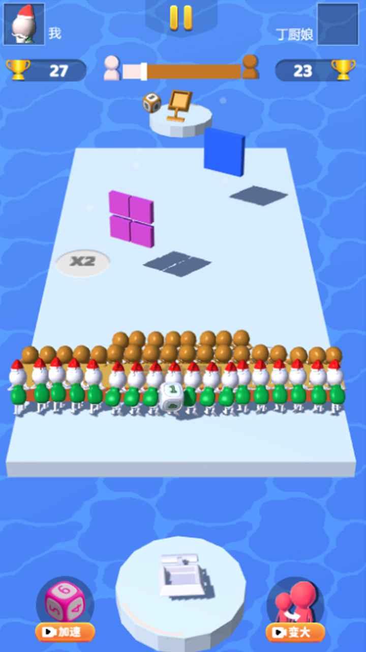 小人数量越多越容易产生更大的力气,玩家越容易取得胜利。