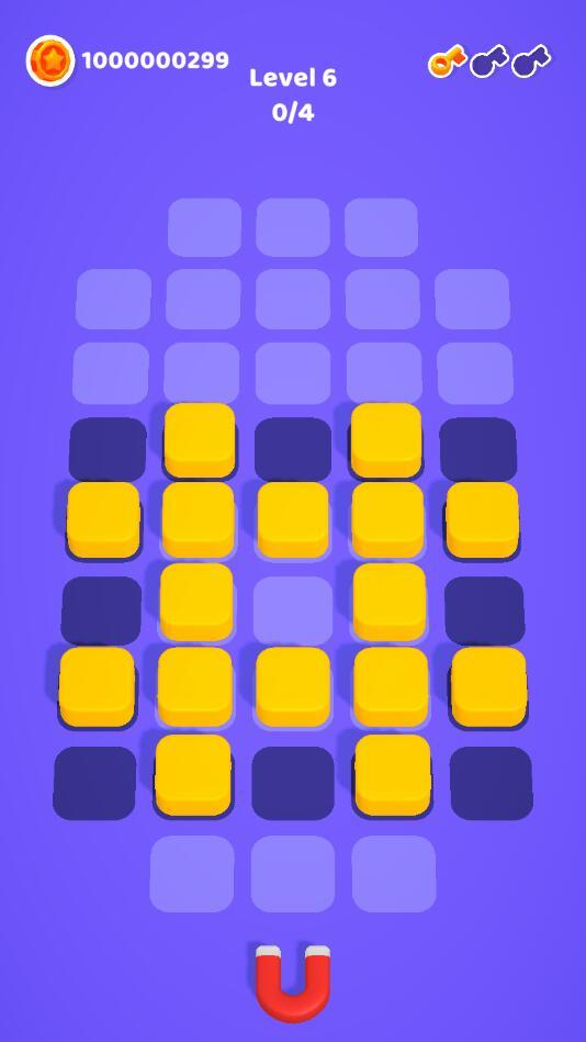 不断的收集里面的磁铁方块,收集的越多你获得的闯关奖励越多。