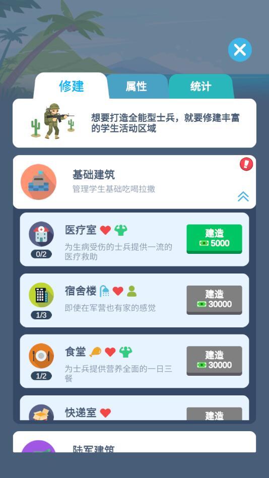 士兵训练营游戏给大家破解成使用金钱不减反加,这是一款经营模拟游戏,玩家将管理一座军校,您需要不断建设各种设施,让里面的士兵能够更好的训练,招聘老师来教育好这群学生,让他们全面发展这样才能毕业,最终让他们成为合格的士兵;