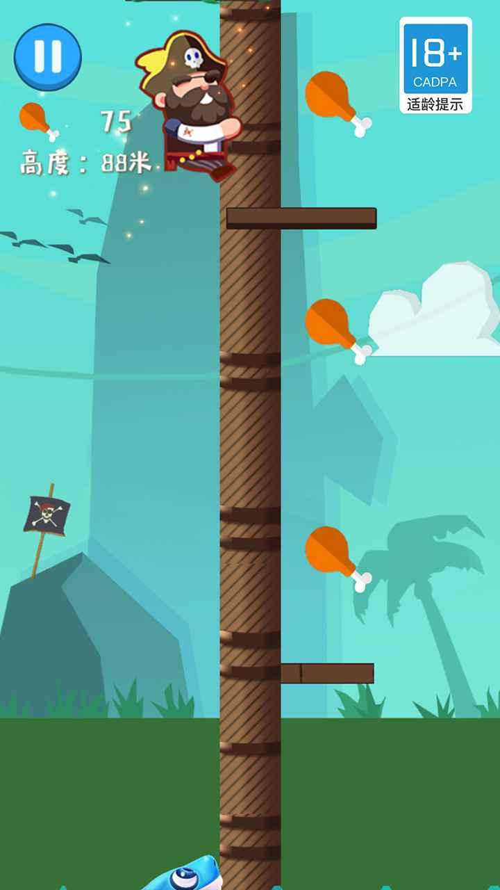 海盗船长是一款单机闯关游戏,玩家将扮演一名船长,但是您的船因为意外要沉船了,您需要沿着柱子一只向上爬,避免接触到海水,注意柱子上会有障碍,玩家需要通过左右移动来帮助船长躲避危险,玩法简单,对大家的反应能力要求很高;