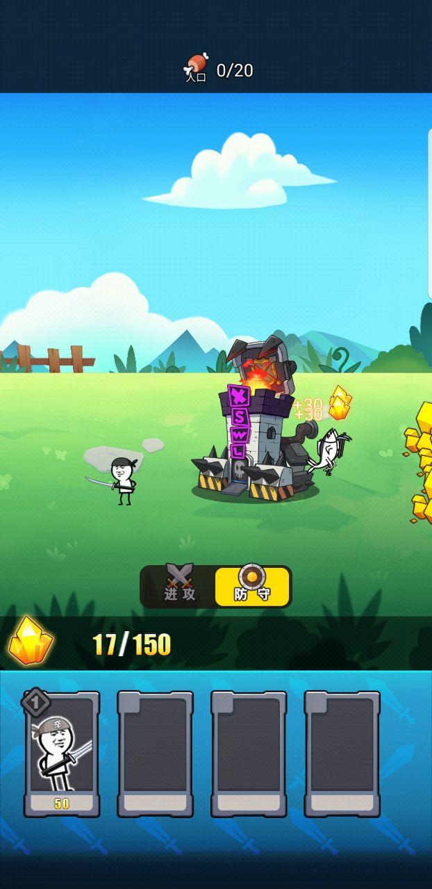 咸鱼矿工正在采矿,收集的矿石可以用来生产军队。类似的游戏推荐《红娘大战遗产》,也是同样的操作。区别在于游戏风格的搞笑和幽默风格。搭配网络流行用语中的表情包,整体风格特别幽默。同时,游戏玩法也是经典战略塔防系统的延续,通过咸鱼矿工的挖掘进度来收集资源和生产士兵。