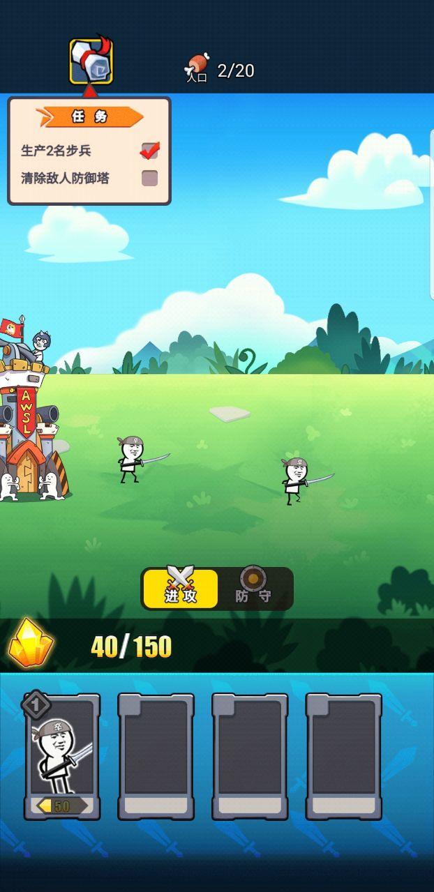 1.游戏画面采用卡通风格。同时游戏中所有兵种的建模都是搞笑的表情包,还是很扯淡的。不同的兵种对不同的兵种有不同的杀伤效果。