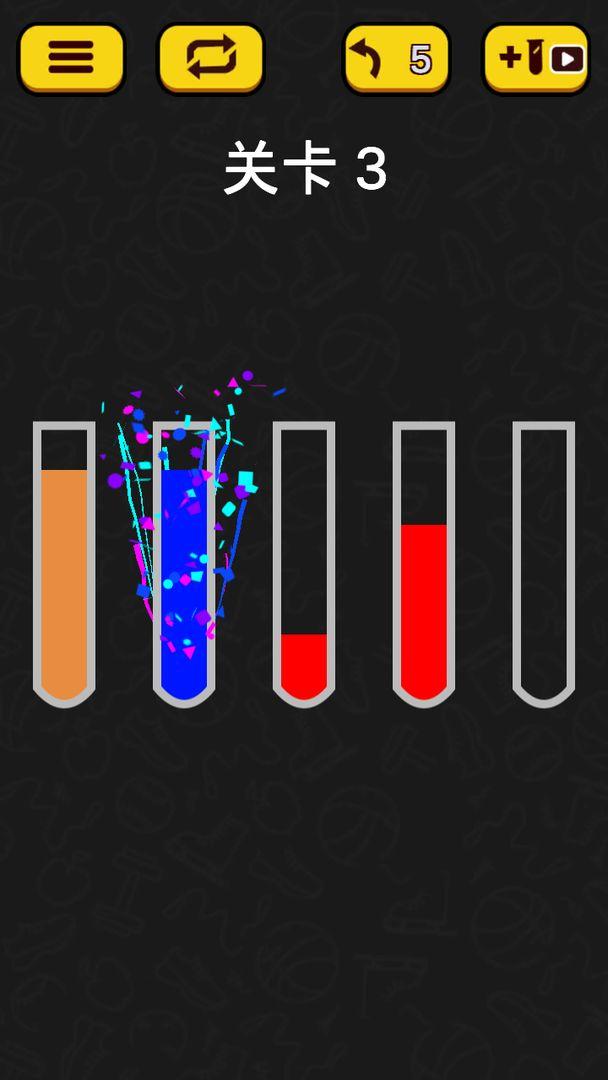 3、将玻璃管中的水按照颜色进行分类,让所有相同颜色的水都聚集到同一个玻璃管中就算完成闯关。