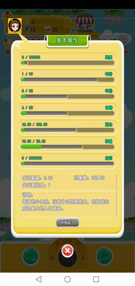 一款跳高游戏,保持好您的重量,收集金币,升级能力,挑战您在游戏的人生高度吧!