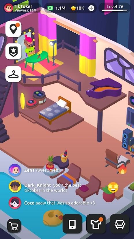 空闲tik模拟器内购破解版将带领玩家进行一场直播盛宴的模拟感受,你将在游戏中扮演一位主播进行直播来吸引人气,你需要绞尽脑汁的去思考你的直播内容才能让自己的人气不断地上升,最后成为一个超人气主播。