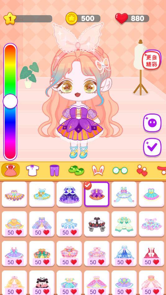 在这里你可以尽情搭配不同的服装和造型,打造属于自己的个性化宠物娃娃角色