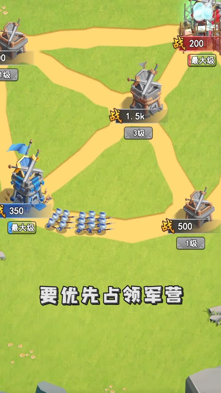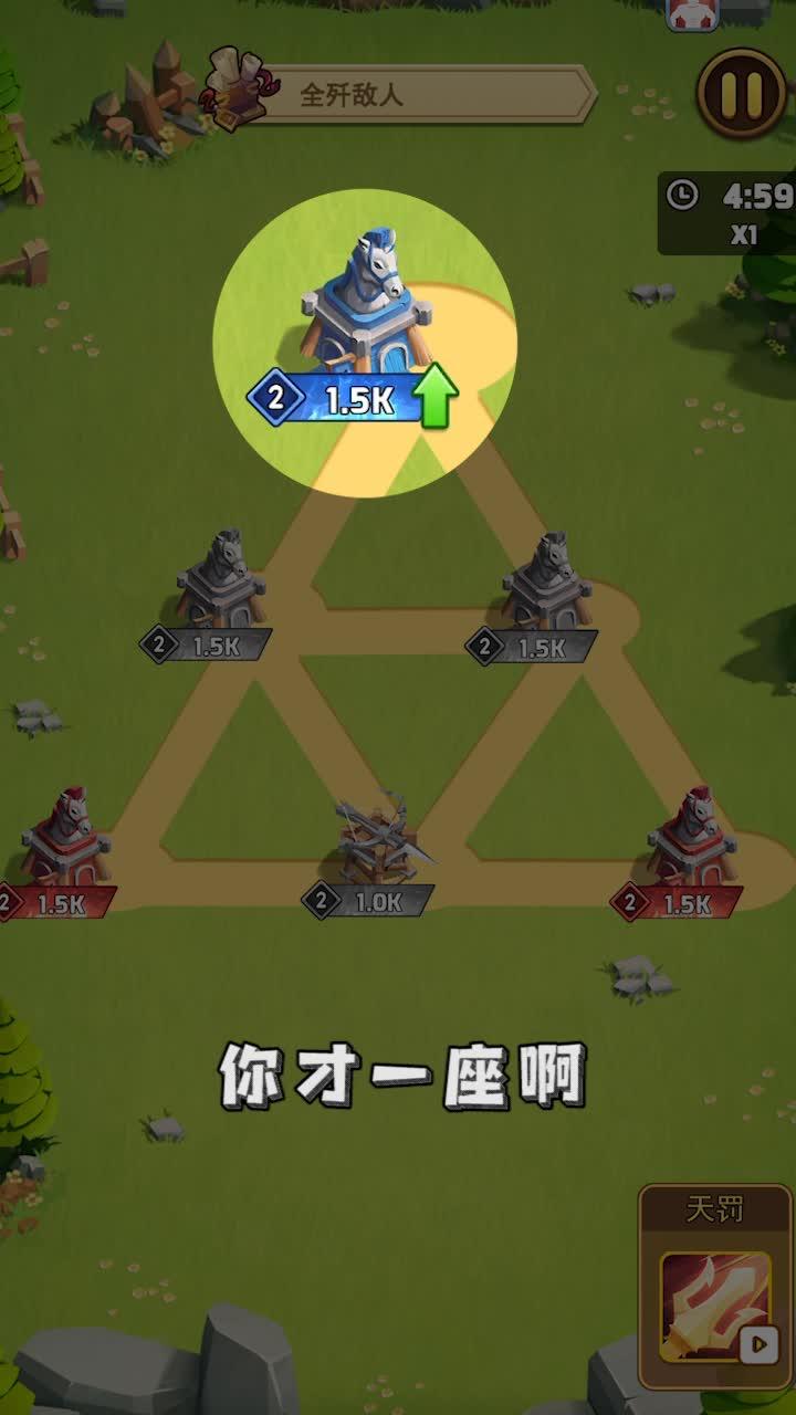 2.合并升级小兵,战略匹配各种炮塔,攻塔。