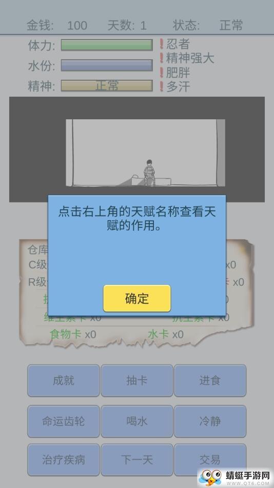 1、因为你的食物,水,可都是抽卡得来的。你还会生病,记得及时治疗。