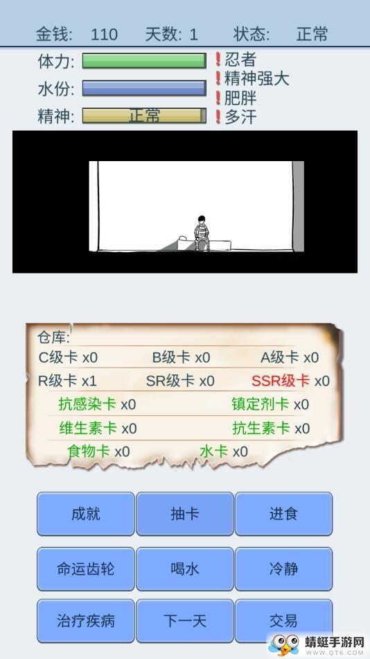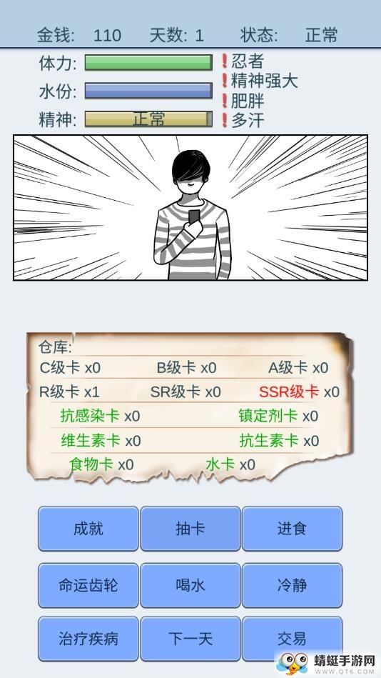-这也是生存游戏,抽卡的同时记得先让自己活下去,因为你的食物,水,可都是抽卡得来的。你还会生病,记得及时治疗。