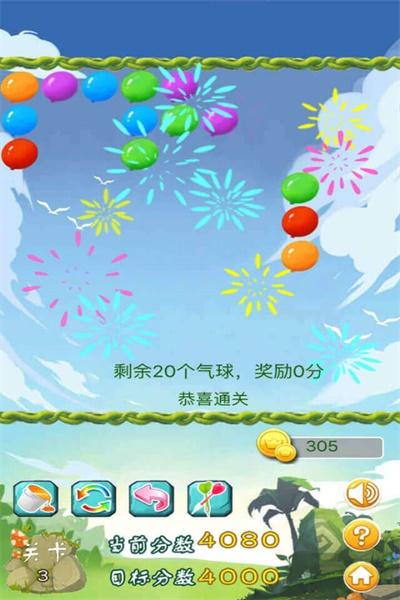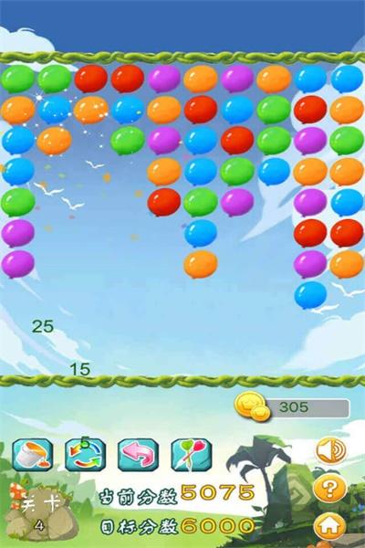 2、消尽模式:消尽模式中你需要将所有气球全部消去才能进入下一关,怕你觉得太难,所以我们发明了可以消灭单个气球的道具--弹弓,从此让屌注孤成为过去。