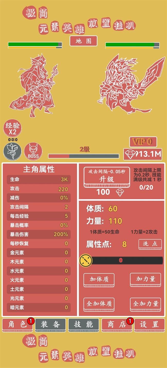 极简元素英雄放置挂机破解版玩法