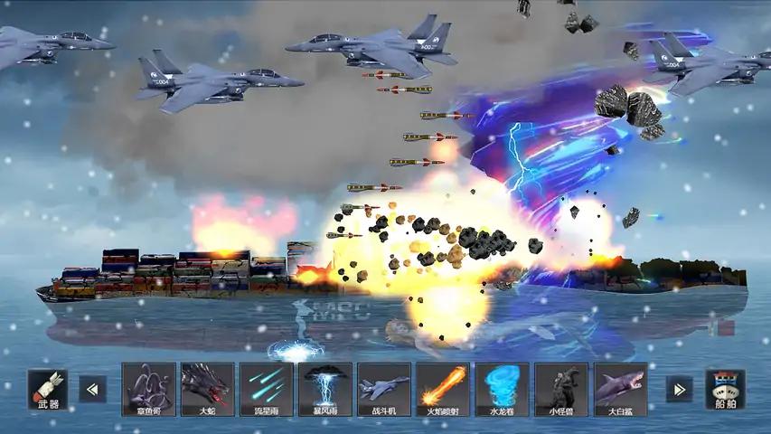 2.简单的2D图形和独特的破坏性游戏可以将各种船只沉入海底。