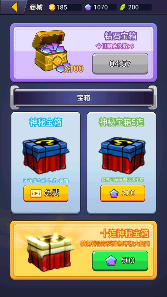 屏幕下方会出现各种箱子,每个箱子内的物品均不相同;