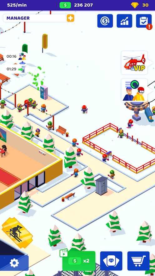 Ski Resort: Idle Tycoon(空闲滑雪场大亨无限钻石钞票版)亮点
