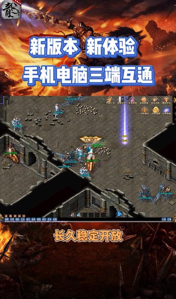 3.战场跨服,自由度高,人物操作简单,最原始最经典的玩法。