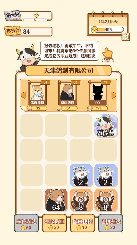 报告老板是一款带有养成经营玩法的2048合成游戏,这款游戏给玩家们破解成了免广告获得奖励,在游戏中玩家需要带领各种小动物来经营公司,游戏的音乐非常的好听,通过合成来提高公司的市值,让有能力的员工越来越多吧;