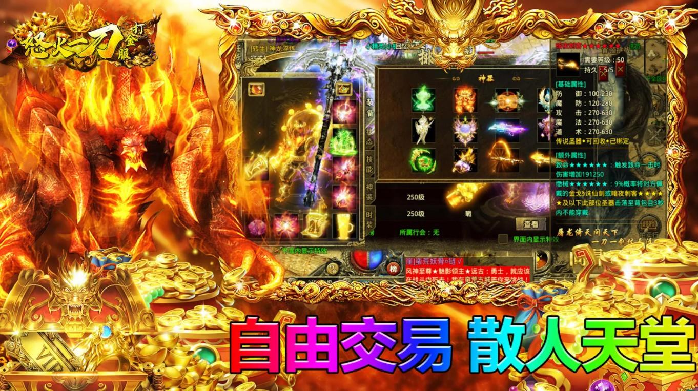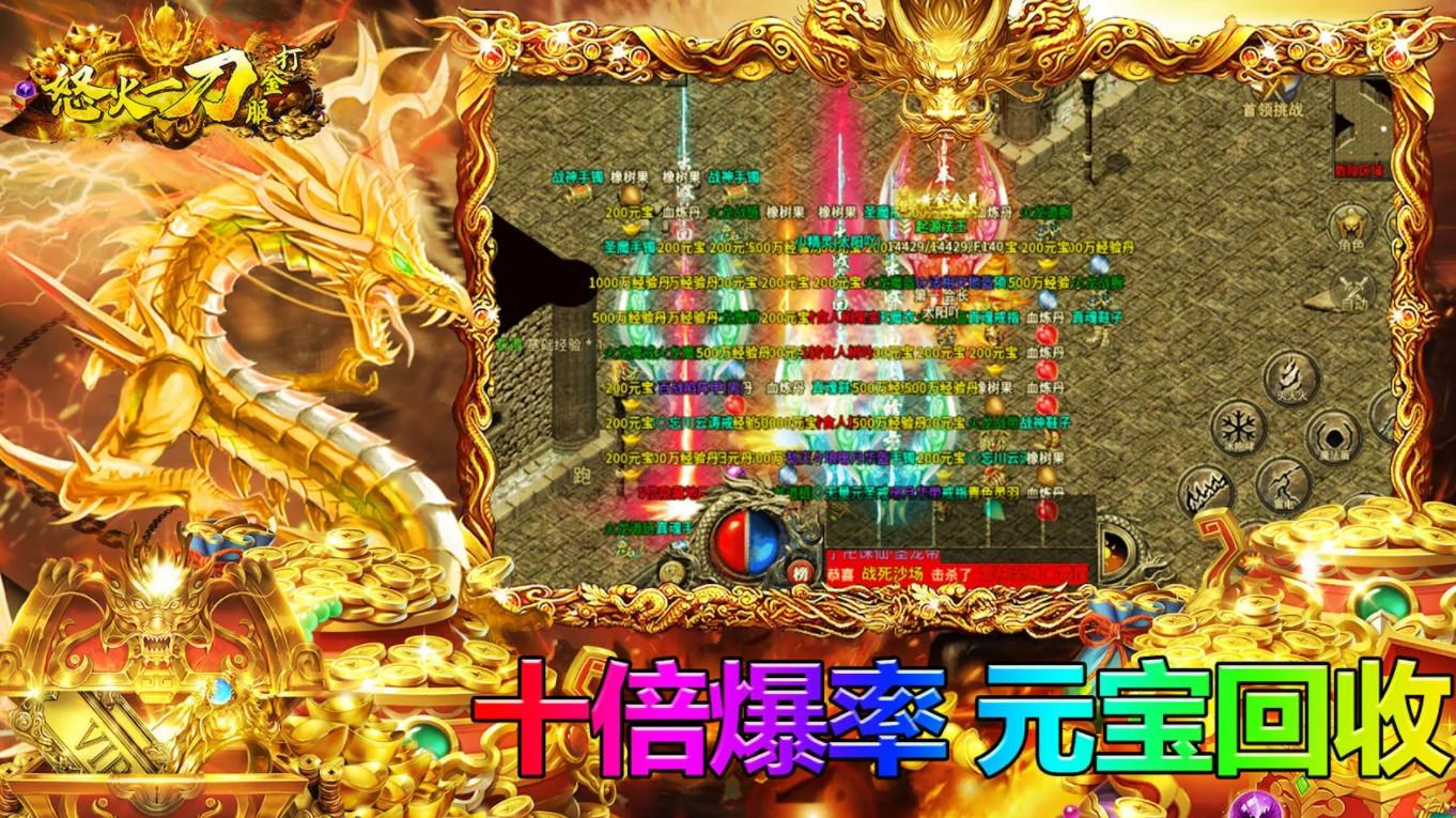 怒火一刀打金服是一款以经典传奇为蓝本的传奇类RPG游戏,游戏完美复刻了传奇手游的经典玩法和内容,爆率超高,装备全靠打,带你感受神装满屏高爆、元宝极速回收、刀刀砍怪带来的快感。