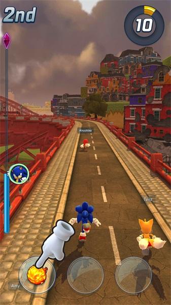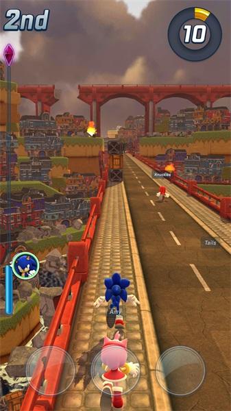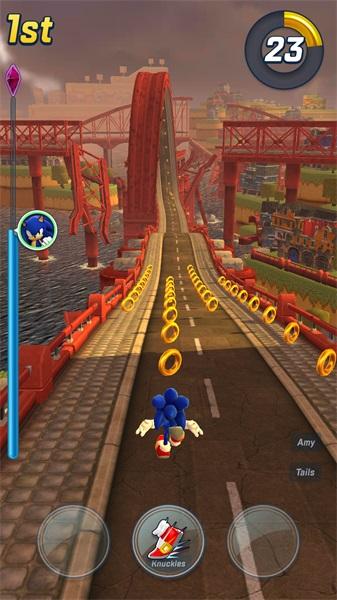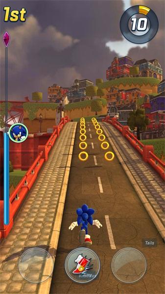 1.索尼克竞技向跑酷游戏,是四人匹配同赛道的道具竞速。画质精良,画面感相比一众跑酷游戏而言,既视感冲击感等一些视觉效果更强烈,也许是因为国内大多是无限分数的逐渐加速跑酷,这个是匹配竞技,赛道距离有限,不再适用加速制度,开局就是高速能更轻松将玩家带入到竞速体验中去。