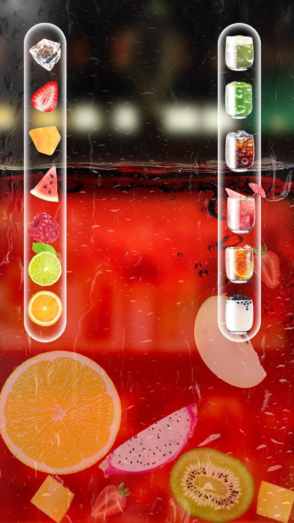 1.可以通过不同的颜色来区分是不是同一种类型,然后通过体感操作喝下去。