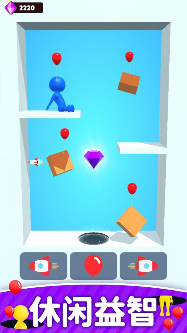 1.最简单的方法就是用气球和火箭把这个慵懒的简笔画推进洞穴。