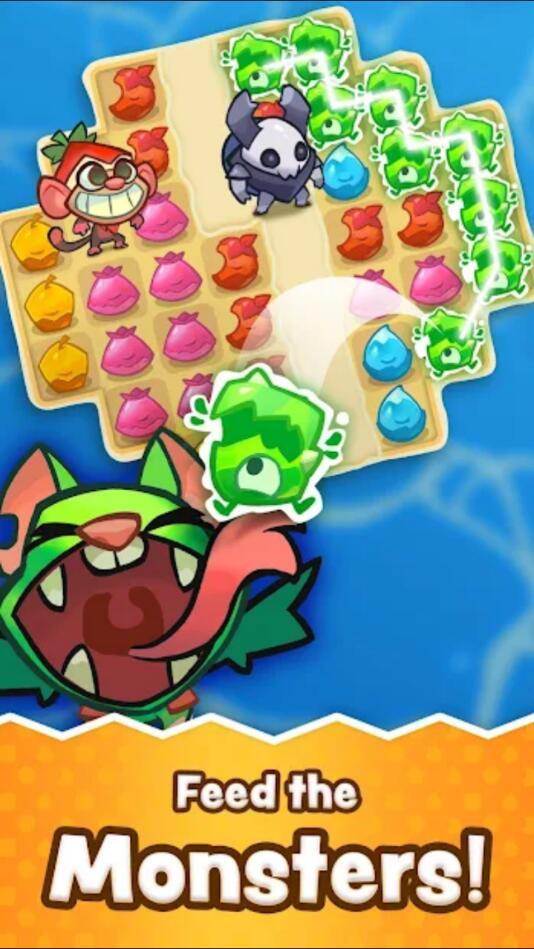 水果怪兽是一款经典有趣的连线消除游戏,玩家通过连接水果的方式得到水果喂给可爱的小怪兽吃,这些小怪物就会帮助您抵御虫虫军团的攻击,可以解锁各种不同能力的小怪物,很多的岛屿等待您来探索,在这里能够享受欢乐的时光;