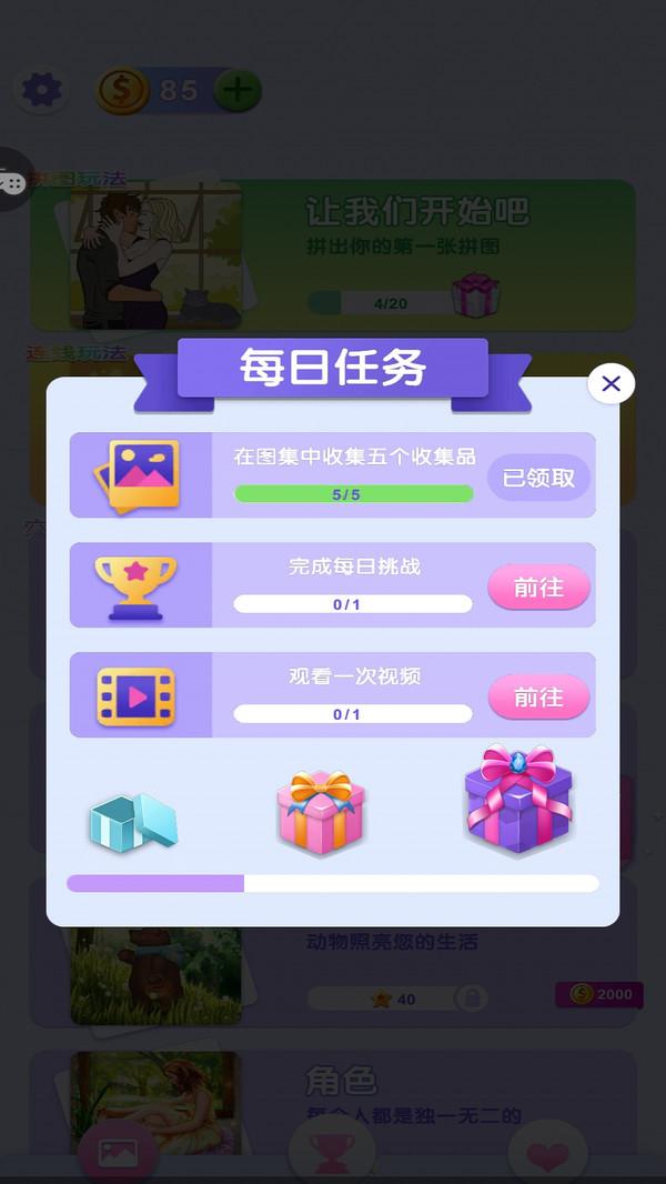 拼出一个小姐姐手游一款操作非常简单也很有趣的的拼图小游戏,任何玩家都可以轻松上手这款游戏。游戏的通关方式多养护不局限于一种玩家可以多尝试用不同的方法进行通关,通关后可以获得大量丰厚的奖励。解锁新的内容,体验超有趣的乐趣。