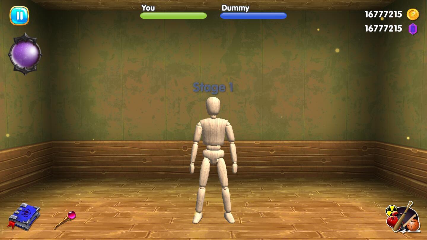 游戏中有大量道具,所有道具均可免费使用,用这些道具攻击假人。