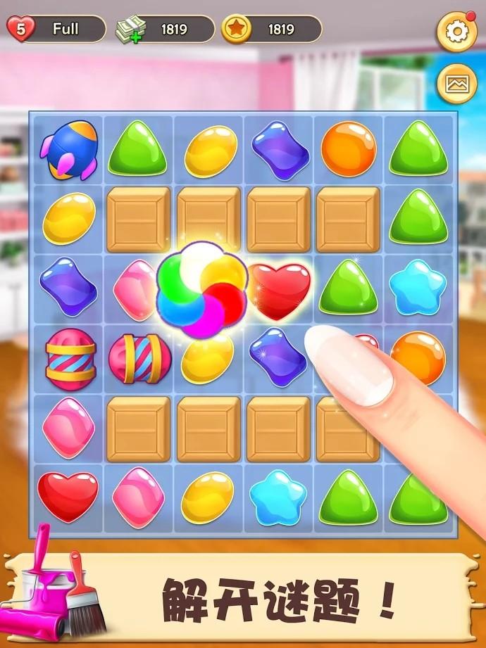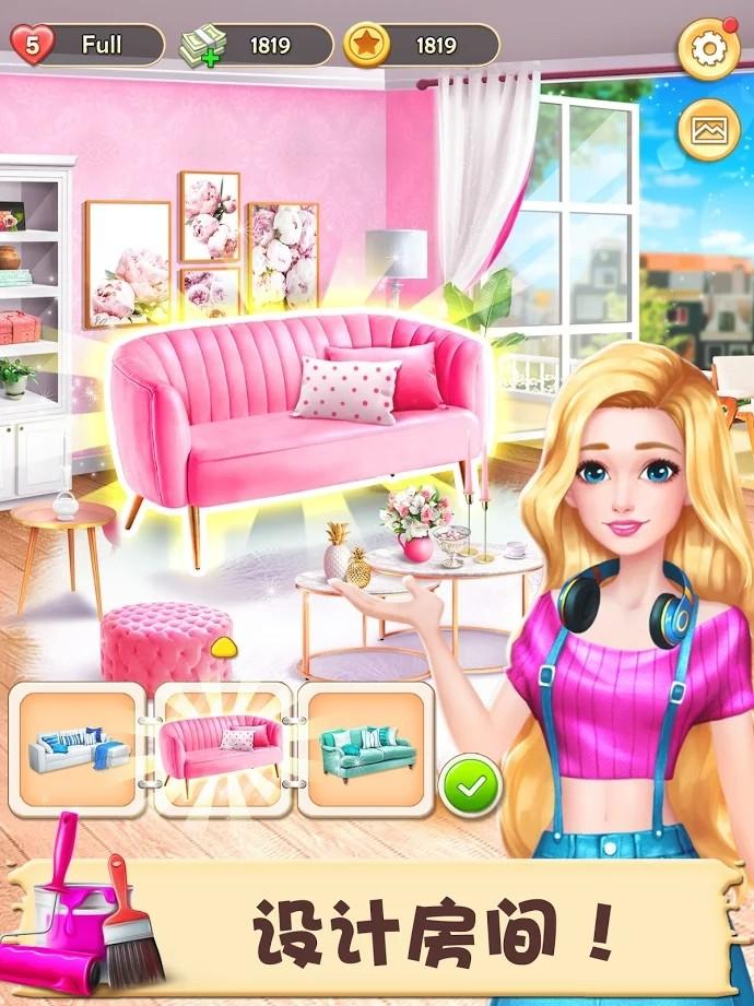 完成有趣的三消挑战,获得金币,解锁更多房间,展示你的设计技巧;