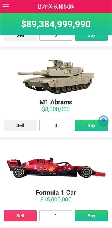 比尔盖茨是美国微软公司联合创始人,他有多么牛逼相信很多小伙伴都知道,那么你想成为比尔盖茨吗?比尔盖茨模拟器可以让你化身为比尔盖茨,游戏以模拟消费为核心玩法,在这款游戏中你将拥有比尔盖茨的900亿美元,快来下载尽情的消费吧!