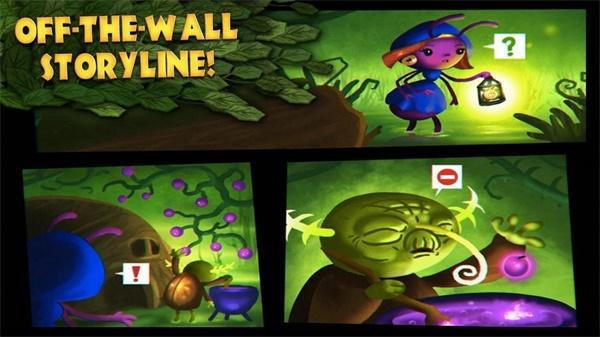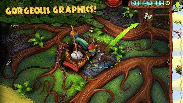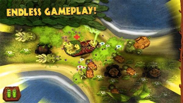 游戏中会出现其他的昆虫来抢夺食物,你可以选中蚂蚁军队然后拖动到敌人身上,之后便可以看到浩浩的蚂蚁大军蜂拥而上,消灭来犯的敌人,当然战斗难免会有死伤,当蚂蚁在战斗中受伤后玩家可以通过控制其他蚂蚁来救治这些伤兵,如果长时间的不给予医治疗,则会死亡,而且死亡数字的多少会影响到通关后的评级。游戏有三种模式,故事模式,生存模式和挑战模式。 故事模式共有100关包含了很多卡通片可以看,情节也设计的非常,每关开始都有小任务,类似不认城堡受到攻击或者快速完成拾取等,完美的完成任务就可以获得三星评价。