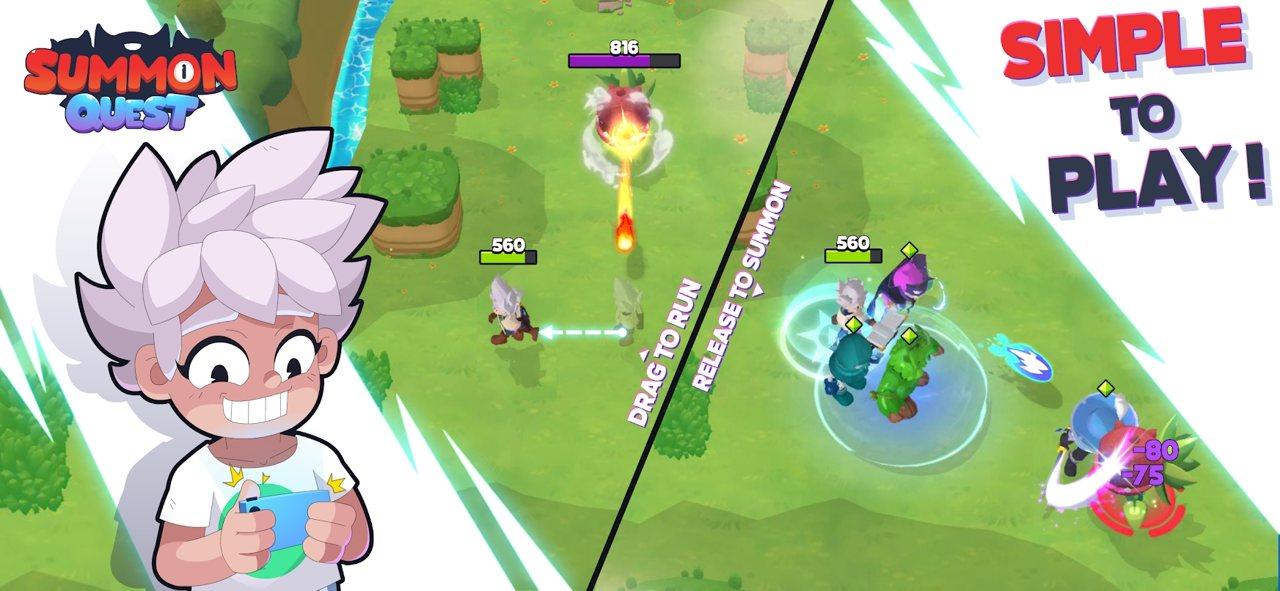 使用操纵杆控制角色,停下来自动召唤并参加战斗。