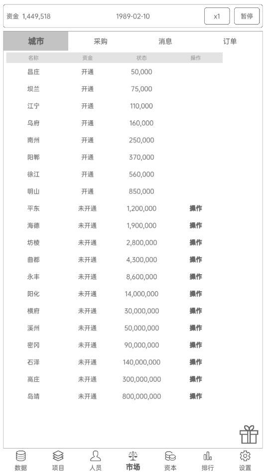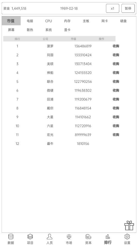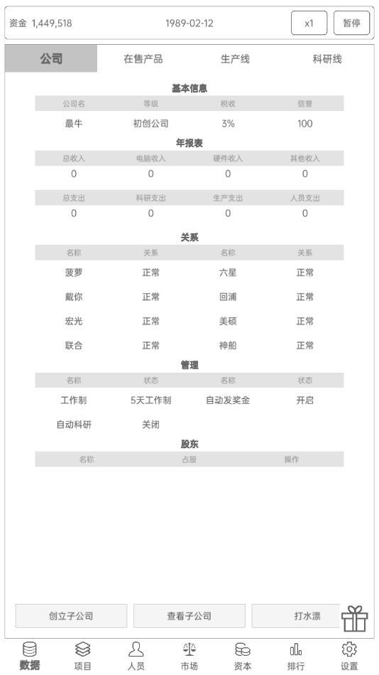 游戏中玩家需要扮演一个老板的角色,控制着公司从初创公司到跨国集团的发展;