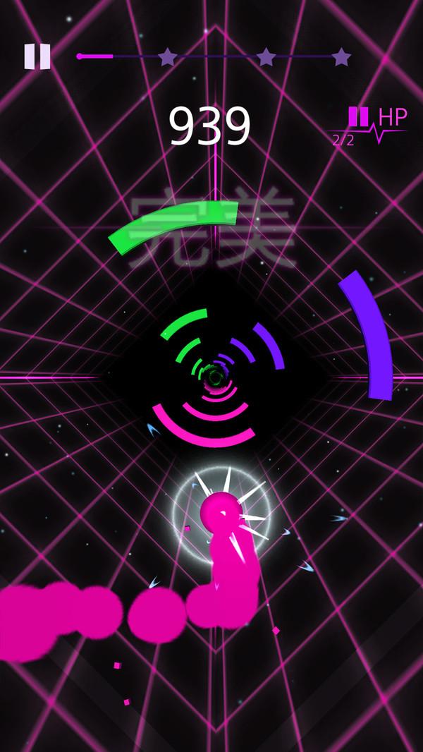 2.轻松开始休闲互动,根据节奏围绕黑洞旋转球。