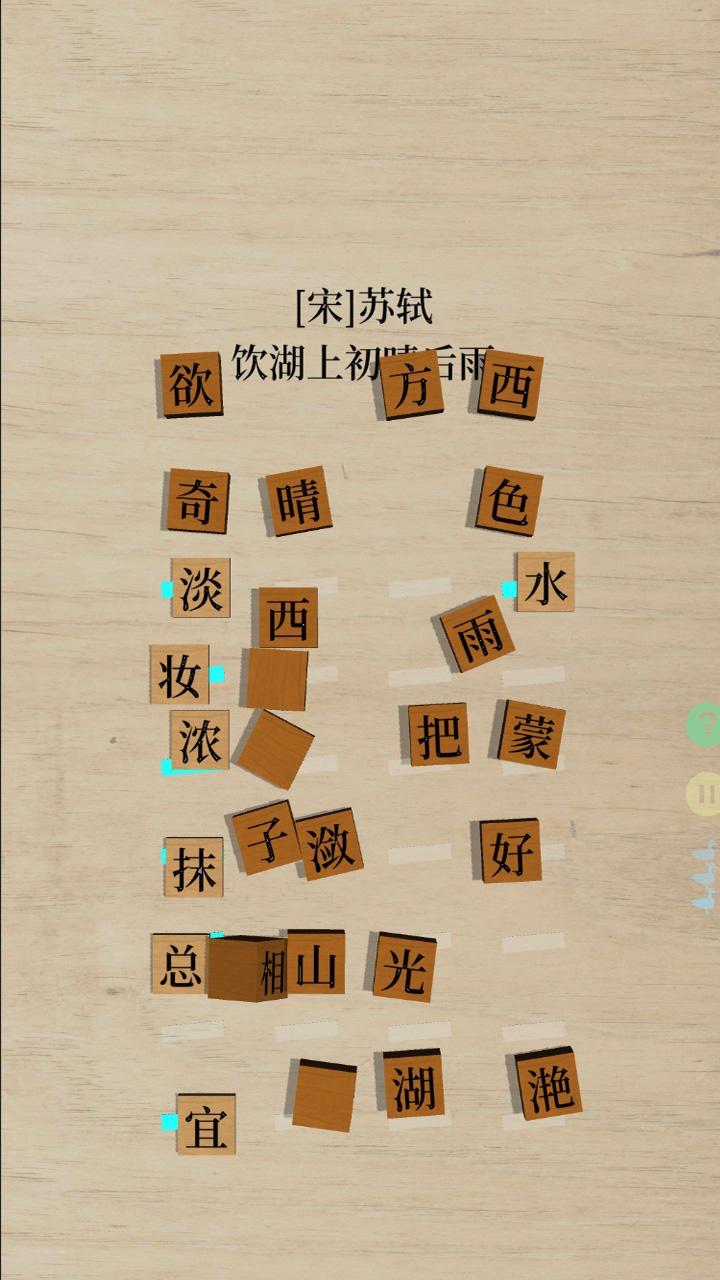 游戏的每一个关卡都会有很多不同的方块,玩家需要快速的把方块组合起来,拼成正确的诗句。