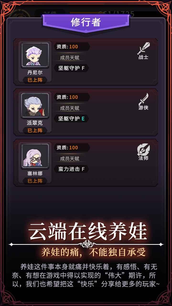 漫漫家族之旅是一款文字风格的挂机冒险游戏,这款游戏的背景奇幻,玩家在游戏中将成为一名族长,您需要与敌人进行战斗,扩大您家族的规模,游戏有很多的角色供玩家养成,您的角色等级越高,实力也就越强,而且挂机玩法也非常的轻松;